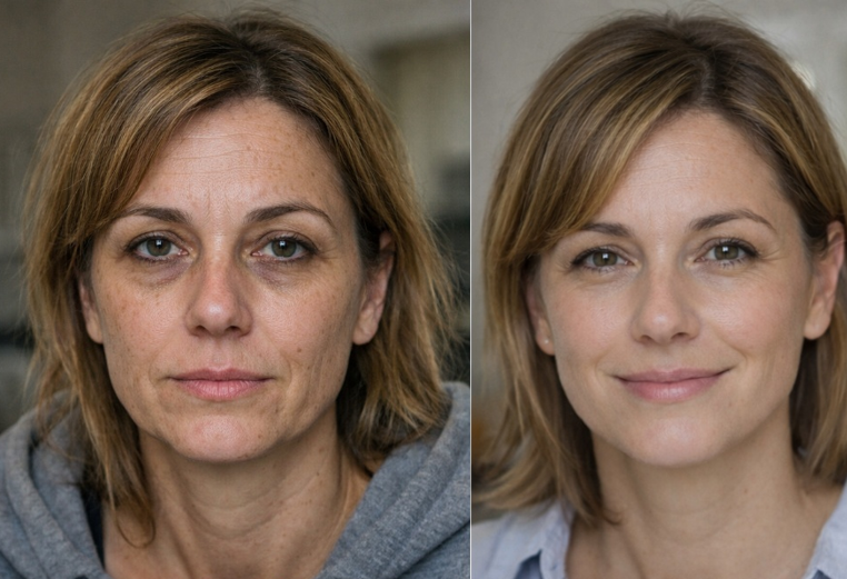 Un regard visiblement plus reposé, plus lisse, plus lumineux.